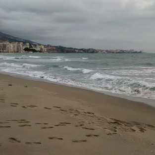 the beach on Friday then Sunday. Yes a sunny Sunday and everyone in town is walking down the paved boardwalk. We enjoyed the day with a two hour walk and beer. I missed Jim's head couldn't tell in the sun lol. Here is also the picture of the apartment building from a different angle, notice the bull.